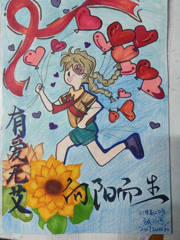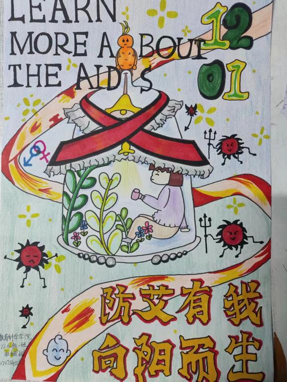参与活动的同学们踊跃投入,呈现出众多令人瞩目的作品。包括“防艾有我,向阳而生”以及“有爱无艾,向阳而生”主题的海报,展现了学生的社会责任感和对自身及他人的保护关注。此外,“以爱之名,为艾发声”主题的作品彰显了学生对艾滋病患者的关切与理解。这些作品色彩艳丽、排版整齐,突显了我校学生在海报设计与制作方面的卓越才华,同时展示了我院学子积极向上的精神风貌以及正确的世界观、人生观、价值观。