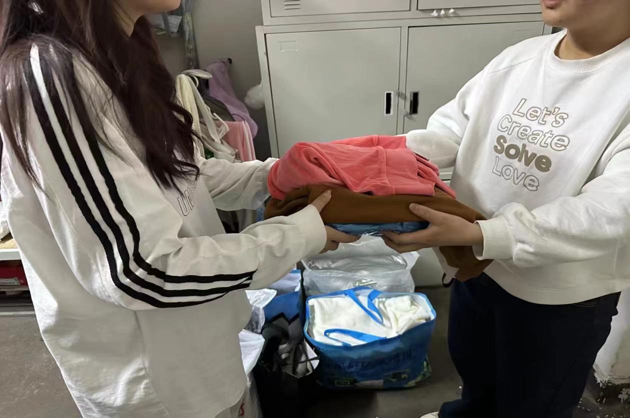 点点真情暖冬日,件件旧衣暖人心;一衣一物尽显爱,一言一语总关情。此次活动旨在将同学们闲置的衣物捐给更需要帮助的人们,给予他们一份关爱,让他们度过寒冷的冬天。每个捐衣者都把衣物清洗干净整理好交给联系人,由联系人进行分类归放到不同袋子并交给学院负责人。同学们踊跃报名,积极参与,共收到百余件衣物。