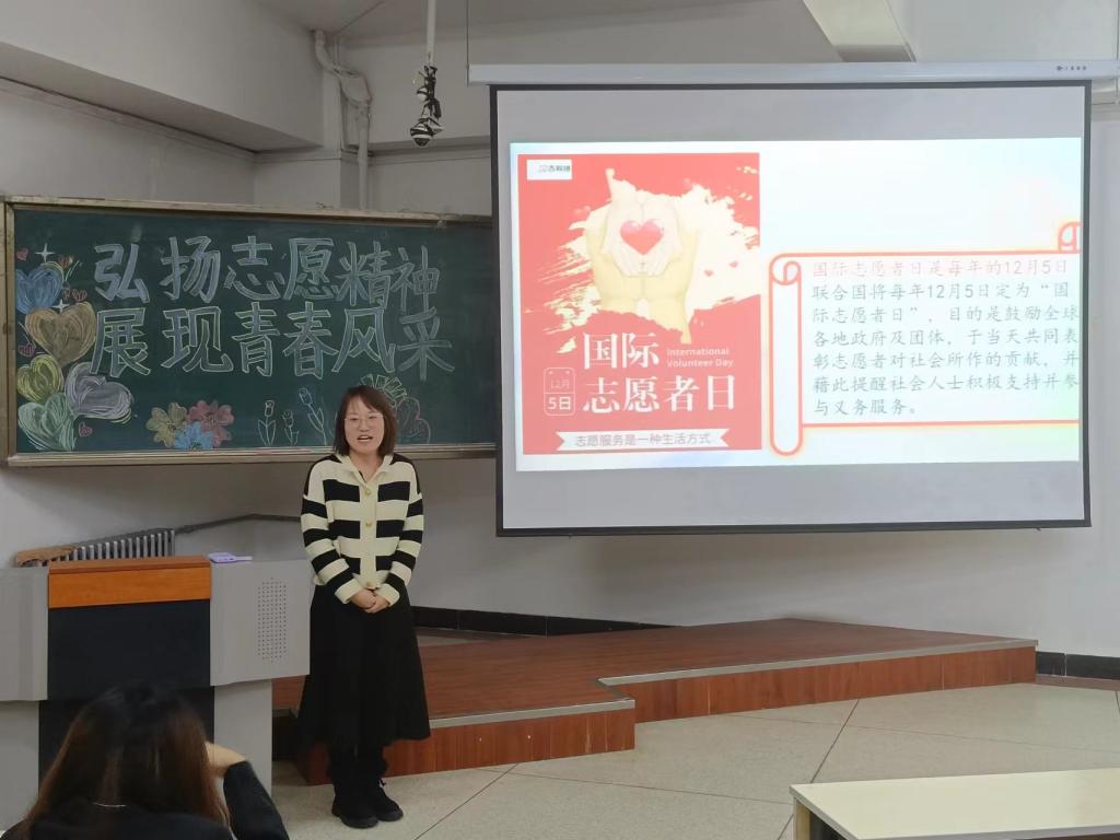 2023年12月5日是第38个国际志愿者日,为促进青年学子积极投入志愿工作,更好地践行“奉献,友爱,互助,进步”的宗旨,引导同学们在学习、生活、工作中发扬志愿服务精神,教育科学学院于12月5日在博西606举办“弘扬志愿精神,展现青春风采”志愿者分享会活动。