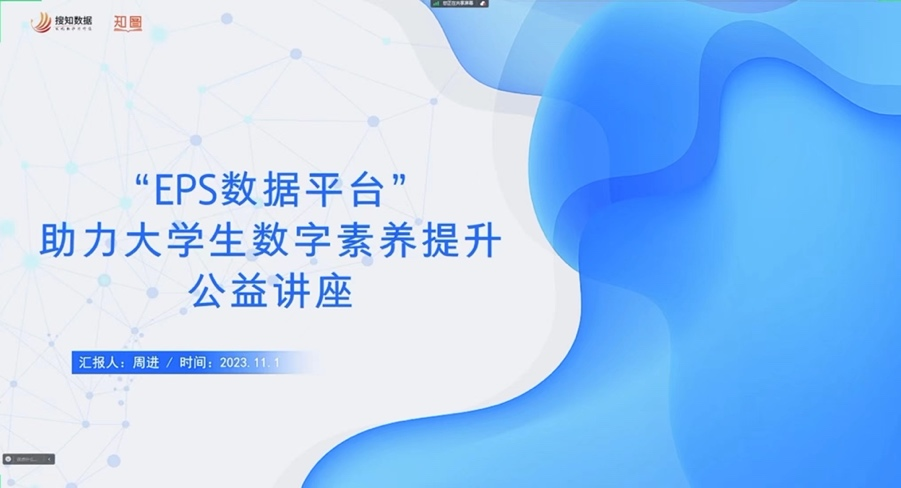 活动包括线上直播讲座(赛前培训)和有奖解答两个部分。讲座以“EPS数据平台助力大学生数字素养提升”为主题,讲解了如何处理信息、理解信息和评价信息等内容。有奖竞答通过EPS数据平台进行,共有400余名学生参加,经过激烈的角逐,18名同学获奖。