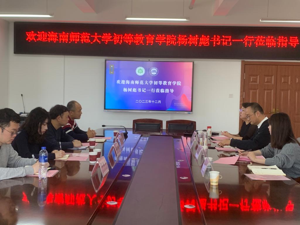 12月7日上午,海南师范大学初等教育学院杨树彪书记一行莅临我校教育科学学院,就双方学生教育与管理工作进行学习交流。我校教育科学学院院长李芳、党委副书记李志强、辅导员王璐然、辅导员赵学飞、小学教育专业教师阿西德参加座谈。海南师范大学初等教育学院党委负责人杨树彪、副院长崔友兴、团委书记韩青青、本科生党总支书记兼辅导员李博文等参加交流。