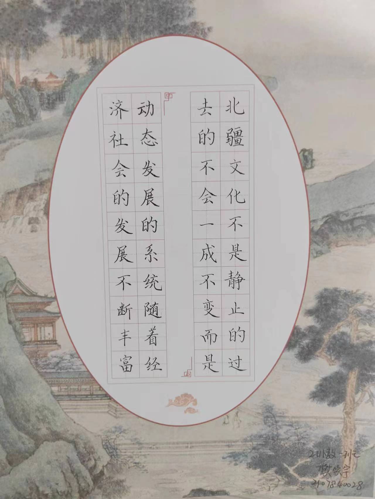硬笔书法征集活动。11月28日-29日,学院举办了“浓浓豪情拂北疆,悠悠文墨冠古今”硬笔书法作品征集活动。同学们围绕弘扬北疆文化的内涵特征与时代价值、铸牢中华民族共同体意识等内容进行书写,同学们满怀激情,主题鲜明,美观大方,书写规范,一撇一捺皆有力顿挫,笔力雄厚,充分展现了大学生的文化素养。
