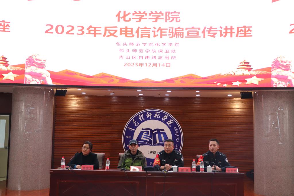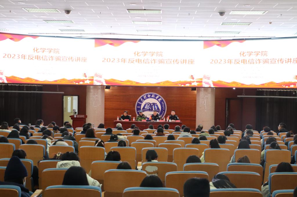 12月14日下午化学学院反电信诈骗讲座成功举办,此次讲座旨在提高学生对电信网络诈骗的防范意识和能力,以保护自身财产安全。参加本次讲座的有各班班主任、全体辅导员及化学学院全体学生。本次讲座由化学学院党总支副书记高俊芳主持。