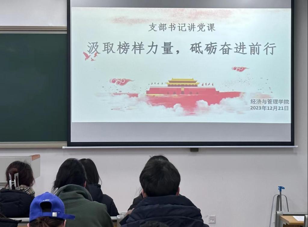 学习先进榜样的事迹,进一步推动党的二十大精神走深走实,12月21日下午,经济与管理学院学生第二党支部书记李婕以“汲取榜样力量,砥砺奋进前行”为主题讲授党课,支部全体党员参加了本次党课学习。