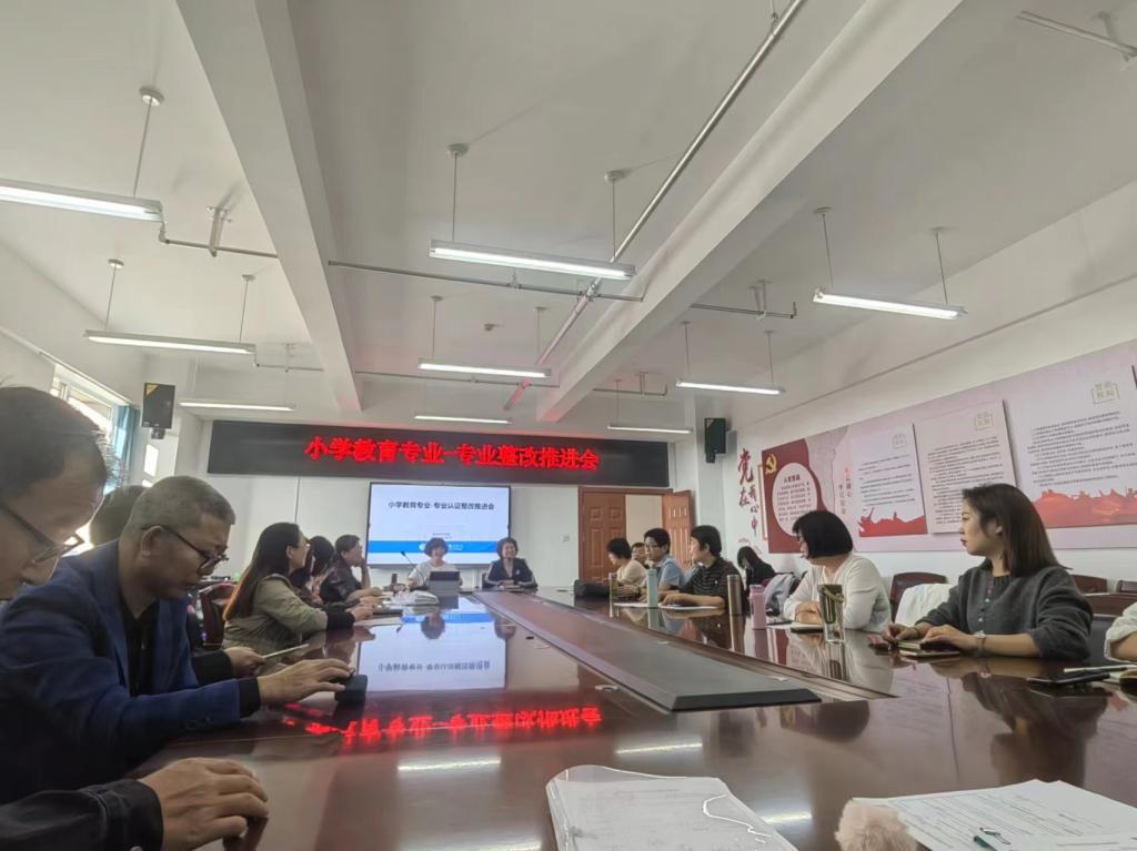2021年9月教育部发文,小学教育专业有条件通过国家师范类专业二级认证。根据专家反馈意见,学院组织专业教师认真总结分析整改措施,于2021年12月完成了《小学教育专业认证整改工作方案》。专业教师分别赴华南师范大学、重庆师范大学、首都师范大学考察学习认证整改经验。通过网络会议的方式向杭州师范大学、湖南第一师范学院学习了整改工作报告的撰写经验。同时聘请多名教育部小学教育教学指导委员会专家进行了线上指导和入校指导。“学生中心、产出导向、持续改进”的认证理念进一步强化,专业建设的思路进一步清晰。