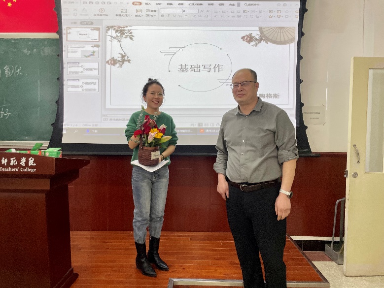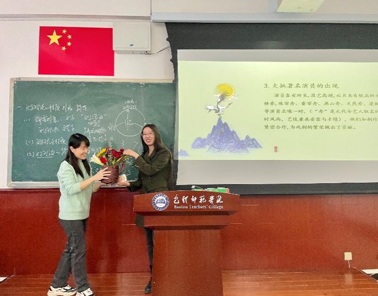 活动在轻松愉快的氛围中展开,花艺师围绕不同花材为老师们讲解基础的插花艺术与技巧,并现场教授插花技艺。老师们以饱满的热情投入到插花创作之中,充分发挥自己的想象,用灵巧的双手、无限的耐心,为一枝枝花材修剪形状、设计造型,并根据色彩进行搭配,在馥郁花香中感悟取舍之道、领悟古典之美,制作出了一盆盆形态各异、娇艳欲滴,象征着祝福与美好的插花作品。最后,敖日布书记、李国德院长以及贾舒副院长、李欣副院长为正在教室辛勤耕耘的女老师们送上节日花篮和节日祝福,通过一盆盆美丽的花卉传递了美好与祝福。
