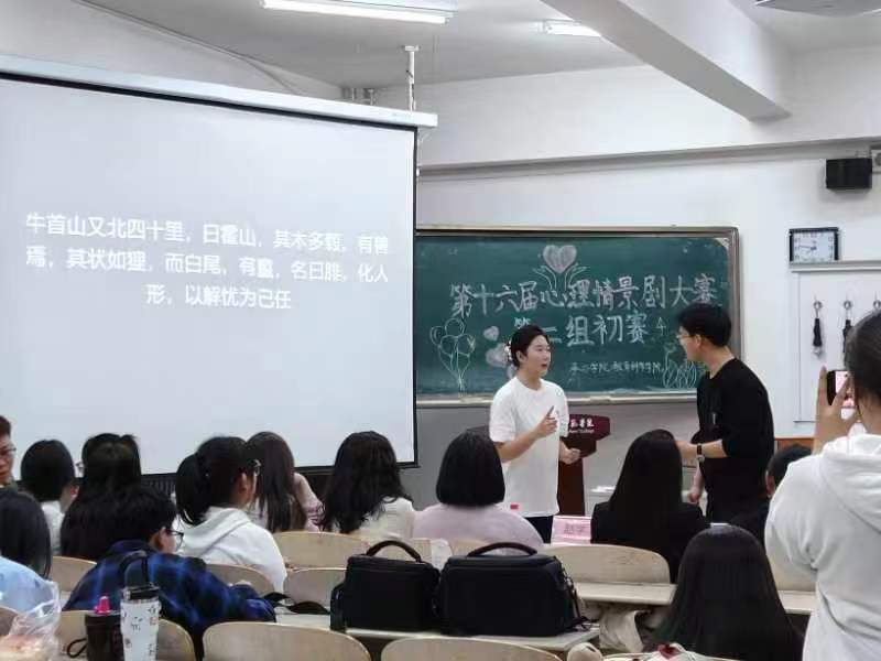 为了普及心理健康知识,让同学们了解和学习心理调适方法,有效帮助同学们善待自我、关爱自我,形成正确的心理健康观念,教育科学学院于3月31日19:00在博学楼104举办了第十六届校园心理情景剧初赛。教育科学学院赵学飞老师、文学院白斯琴老师、音乐学院谷玥老师、大学生心理发展协会副主席宰嘉曼、教育科学学院,物理学院,音乐学院、文学院等4位学生会主席担任本次比赛评委。