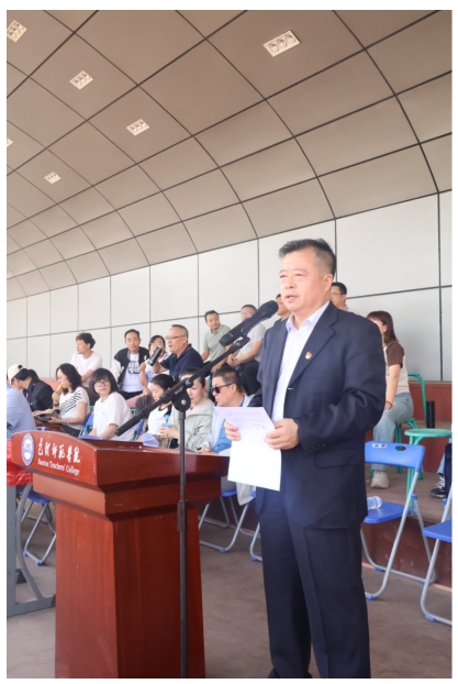在运动场上激烈的比赛后,迎来了本次运动会的闭幕式。副院长李中华宣布了比赛结果,预科2班班主任斯琴毕力格、学工办主任李世光、副院长李中华、党总支副书记郭宏升、书记胡琮禹分别为获得各类奖项的班级和运动员颁发了荣誉证书。