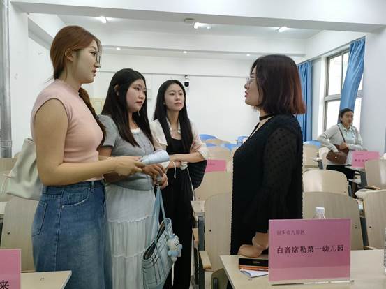 招聘会邀请到包头市智晟教育科技有限责任公司、高新区锦河湾幼儿园、东河区惠而乐幼儿园、中青未来连锁幼儿园、世纪星幼儿园、昆区巴学园幼儿园、伊金霍洛旗金湖幼儿园、九原区白音席勒第一幼儿园7家单位进行招聘,单位负责人分别对各自单位的招聘基本情况、教师招聘政策进行了详细介绍,招聘单位代表与同学们积极交流,一一解答了同学们所关心的薪酬和待遇问题。