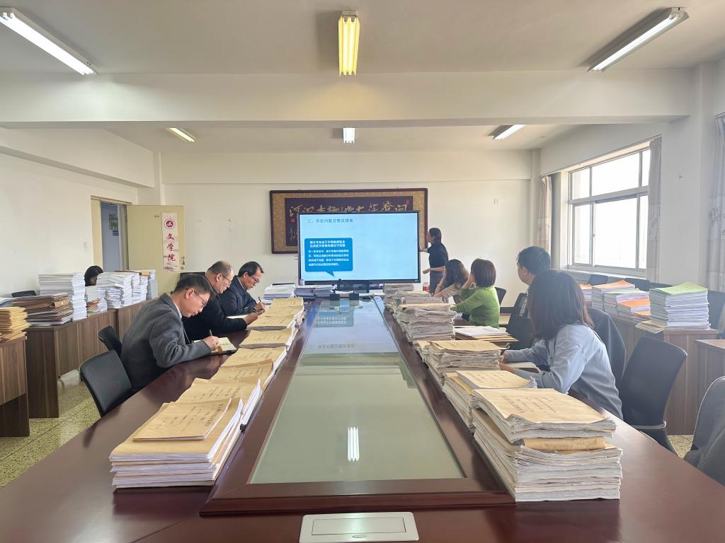 检查过程中,文学院教学副院长贾舒详细汇报了自查过程中发现的问题及改进措施,展现了文学院在自我提升和问题解决方面的积极态度。督导组对文学院的教学资料,包括试卷、平时作业、三习材料、毕业论文、教研室活动记录、教学大纲及达成度评价分析报告等进行了细致审查,以全面掌握文学院的教学状况和准备情况。