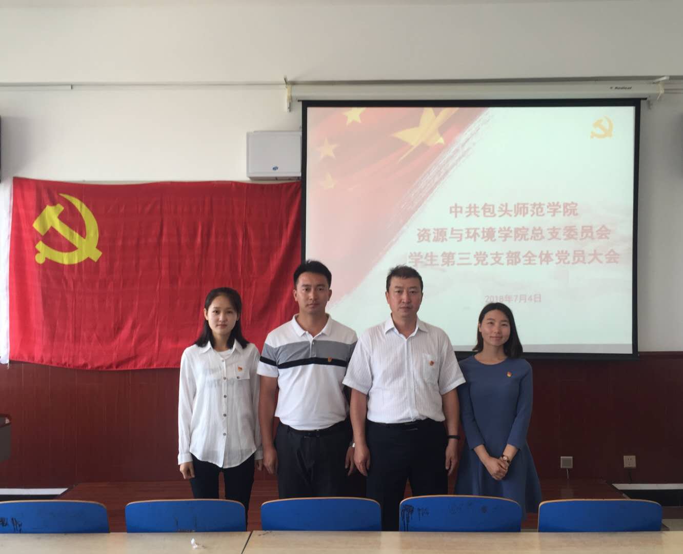 7月4日8时,教工党支部、学生第一、第二、第三党支部分别在四个会场,召开了党支部换届选举全体党员大会,支部党员参加了大会,会议由各党支部书记同志主持。