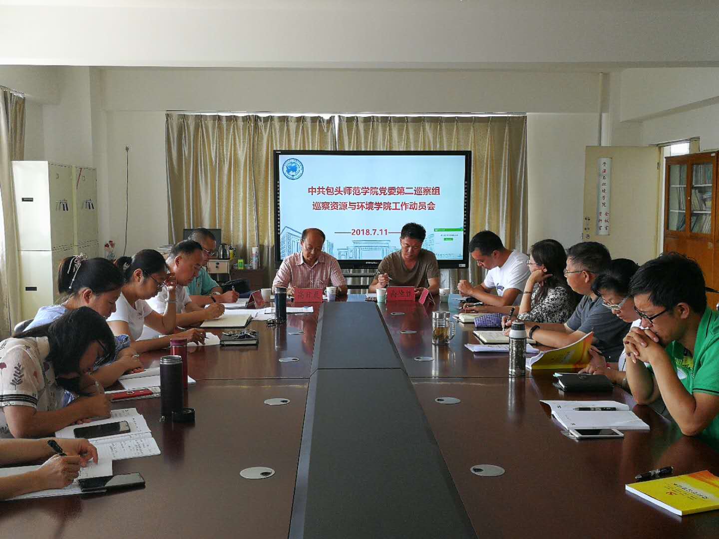 7月11日下午,为进一步落实党的十九大关于全面从严治党要求,严肃党内生活,净化党内政治生态,加强党对意识形态工作领导,不断强化党内监督,推动全面从严治党,根据《中国共产党章程》巡视巡察工作制度和学校党委《关于开展2018年巡察工作的实施方案》(包师党办发【2018】11号)精神,校党委第二巡察组在博学楼719室召开巡察资源与环境学院工作动员大会,校党委第二巡察组组长高日晨同志、巡察组成员高德胜、尚岩、薛英等同志出席会议,学院全体教师参加了动员会,动员大会由校党委第二巡察组组长高日晨同志主持。