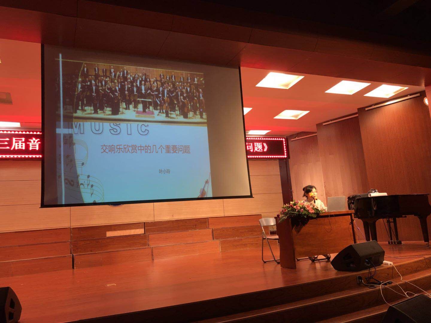 讲座由我校音乐学院副教授叶小玲主讲,她从“何为交响乐”、“交响乐队编制”、“音乐的层次构成”、“交响乐的体裁”等四个方面展开论述,并结合实际作品讲解欣赏方法,带领现场学生深入浅出的展开分析,有效解决了学生在交响乐欣赏中泛泛之听、无从下手的问题。