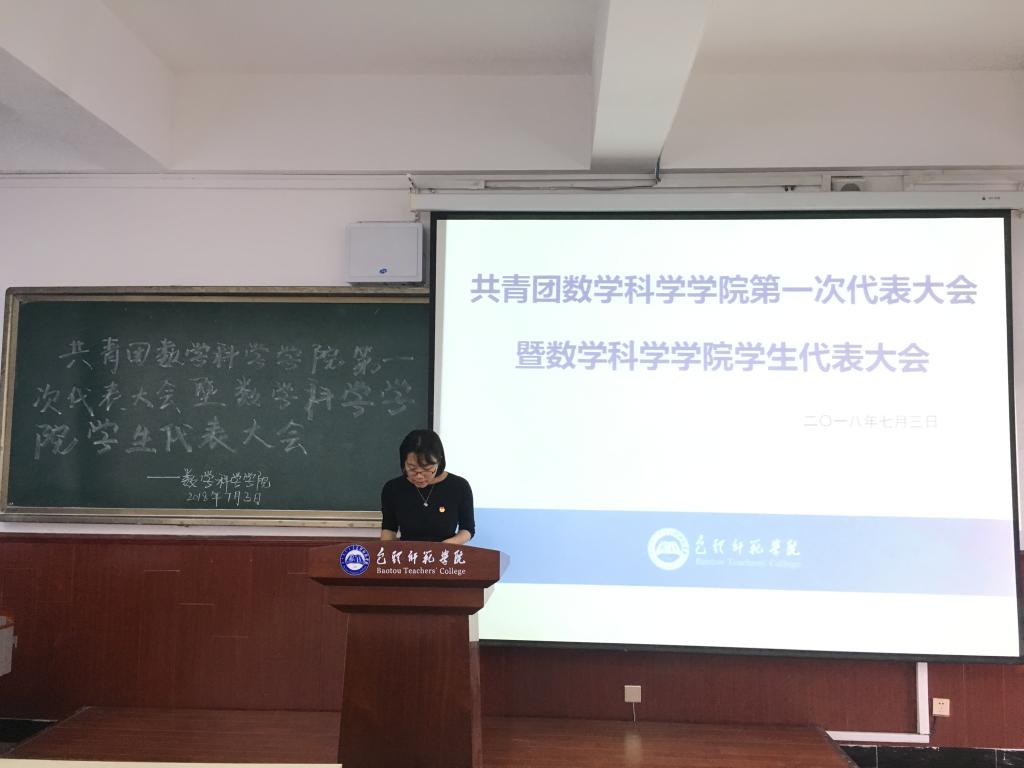 7月3日,包头师范学院数学科学学院第一届团学代会在博学楼400隆重召开,党总支副书记、副院长杨尚,团总支书记宋金锦以及47位团代表、48位学代表参加会议。