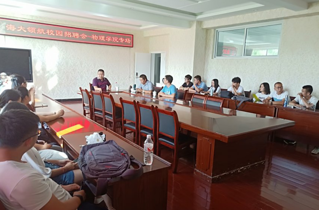 6月27日下午,物理科学与技术学院在逸夫楼2楼重点实验室召开了海大领航学校校园招聘会,本次招聘会的讲师是由海大领航学校的郑老师和陈老师担任,物理学院辅导员王凯出席,20余名有意愿担任教师工作的毕业生参加了此次招聘会。
