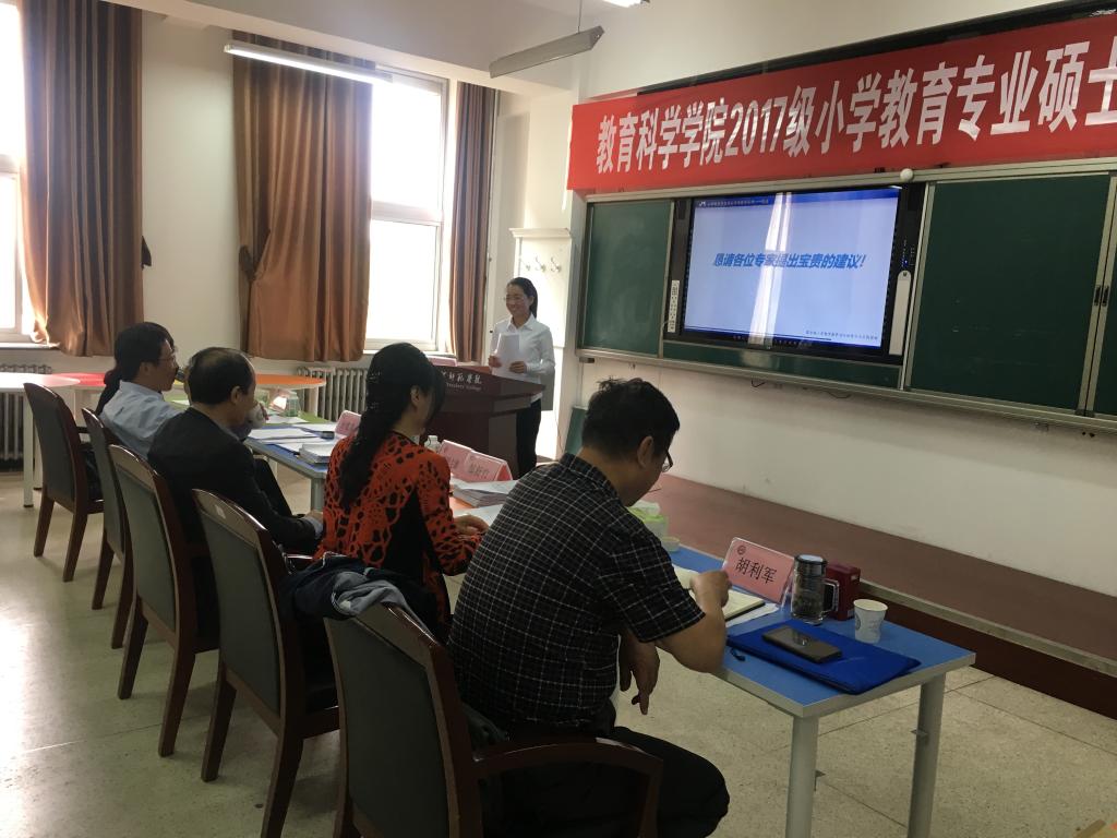 答辩会开始前,教育科学学院郝红英院长介绍了答辩委员的基本情况。随后在答辩委员会主席郜舒竹教授主持下,十一名学生依次对学位论文情况进行自我陈述,答辩委员对论文的优缺点进行点评并提出问题,答辩人就相关问题进行了答辩互动。
