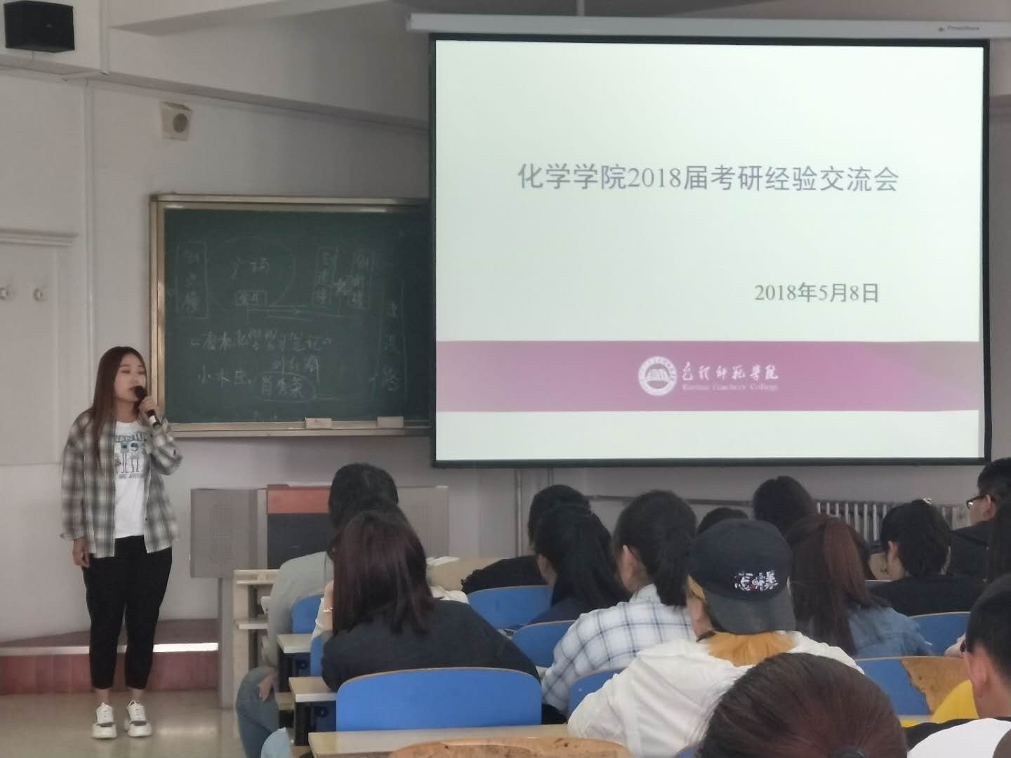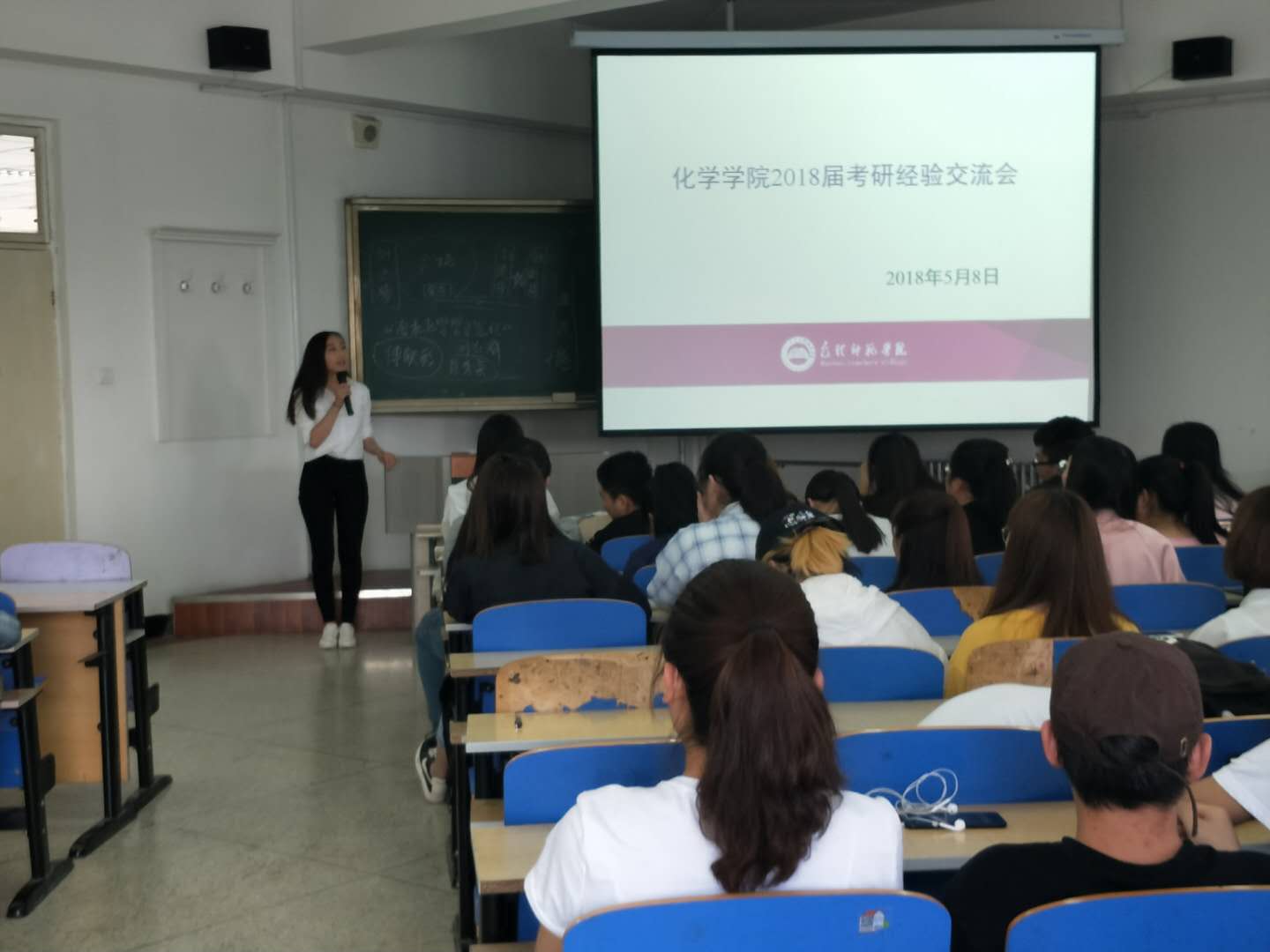 考研是磨练人意志和耐心的过程,是一场持久战,为了鼓励同学们,2014级白鹤、段军、梁凇,杨小雪、李慧、卢敏、李娜、闫雪兰及张巧霞等同学结合她们自己的经历,从不同的方面为同学们讲解考研过程,使大家对考研有了更具体、更清晰的认识,也增强了考研的信心与决心。会后同学们纷纷表示有了更明确的学习方向,会以积极乐观的心态迎接考研。(化学学院)
