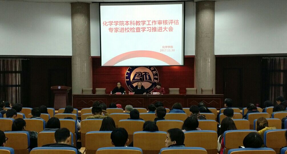11月30日下午,化学学院全体师生在学术报告厅召开了“本科教学工作审核评估专家进校检查学习推进大会”。化学学院党总支书记史继敏主持学习推进会。