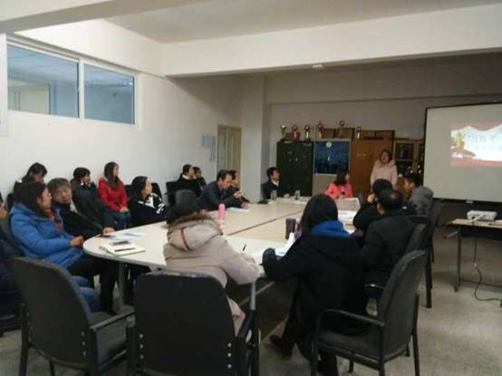 会议第二项内容为学生第一党支部示范性组织活动,对推进党建创新项目建设开展的“1+1+1+1”活动模式形成的理论学习成果进行示范推送。由学生第一党支部党员云梦婷同学从“七年知青岁月的艰苦磨练”“一同下乡知青的回忆”“当年下乡当地老乡谈书记的知青岁月”“学习《习近平的七年知青岁月》”四个方面讲解了《习近平的七年知青岁月》,分享了同学们的学习体会,对十九大报告提出的青年兴则国家兴,青年强则国家强有了更加深入的理解。
