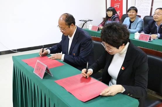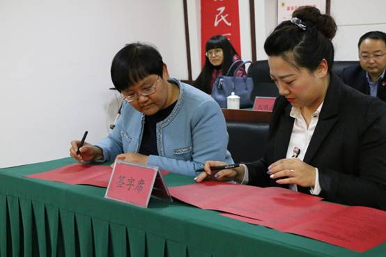 签约仪式上,高日晨同志与高竹同志代表双方签订了《合作共建协议书》,刘瑞清同志与王莹同志签订了《建立大学生实习基地协议书》。会后,作为合作的开局,富强路街道办事处接收了我院25名大学实习生,分别分配到所属6各社区进行为期3个月的实习。