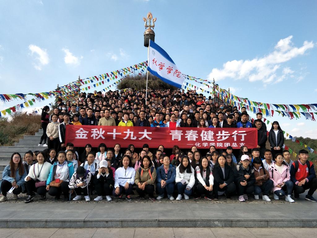 10月12日下午,化学学院在赛罕塔拉公园举办了主题为“喜迎十九大,青春健步行”活动,学院党总支书记史继敏、副书记冯丽和学工办老师以及2017、2016、2015级全体学生近500人参加了此次活动。