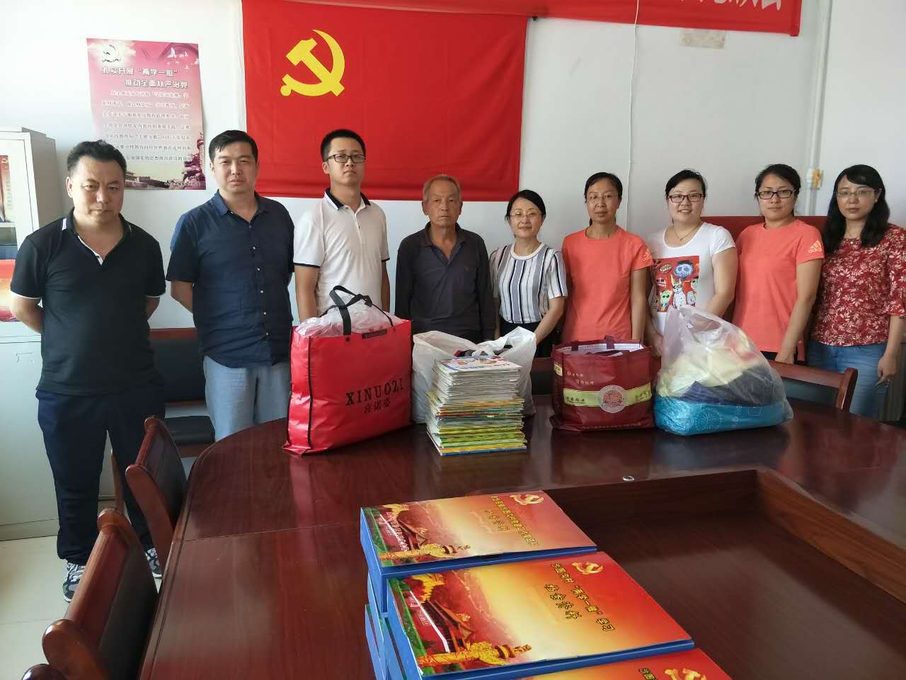 随后,党员们又走访了获评“中国宜居村庄”的美岱召乡沙图沟村,这里依山傍水,又恰逢“金杏节”,到处绿树成荫、瓜果飘香,村中还搭起了“二人台”的戏台,不觉被这淳朴的民风深深感染。党员们走访村民,并与村支书畅谈了国家利民惠民政策给农村带来的巨大变化,最后在村委会进行了捐赠图书、衣物的党员献爱心活动。