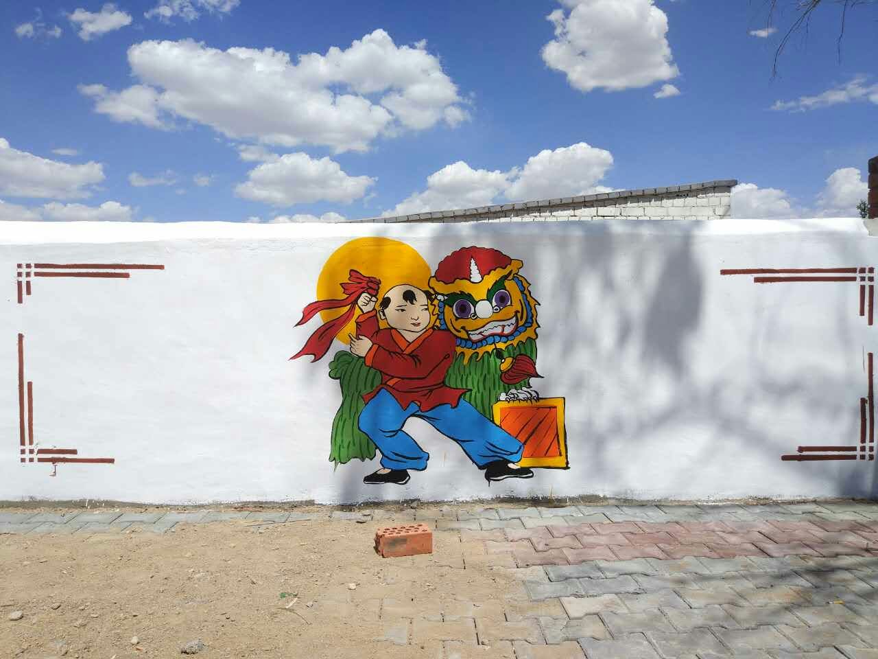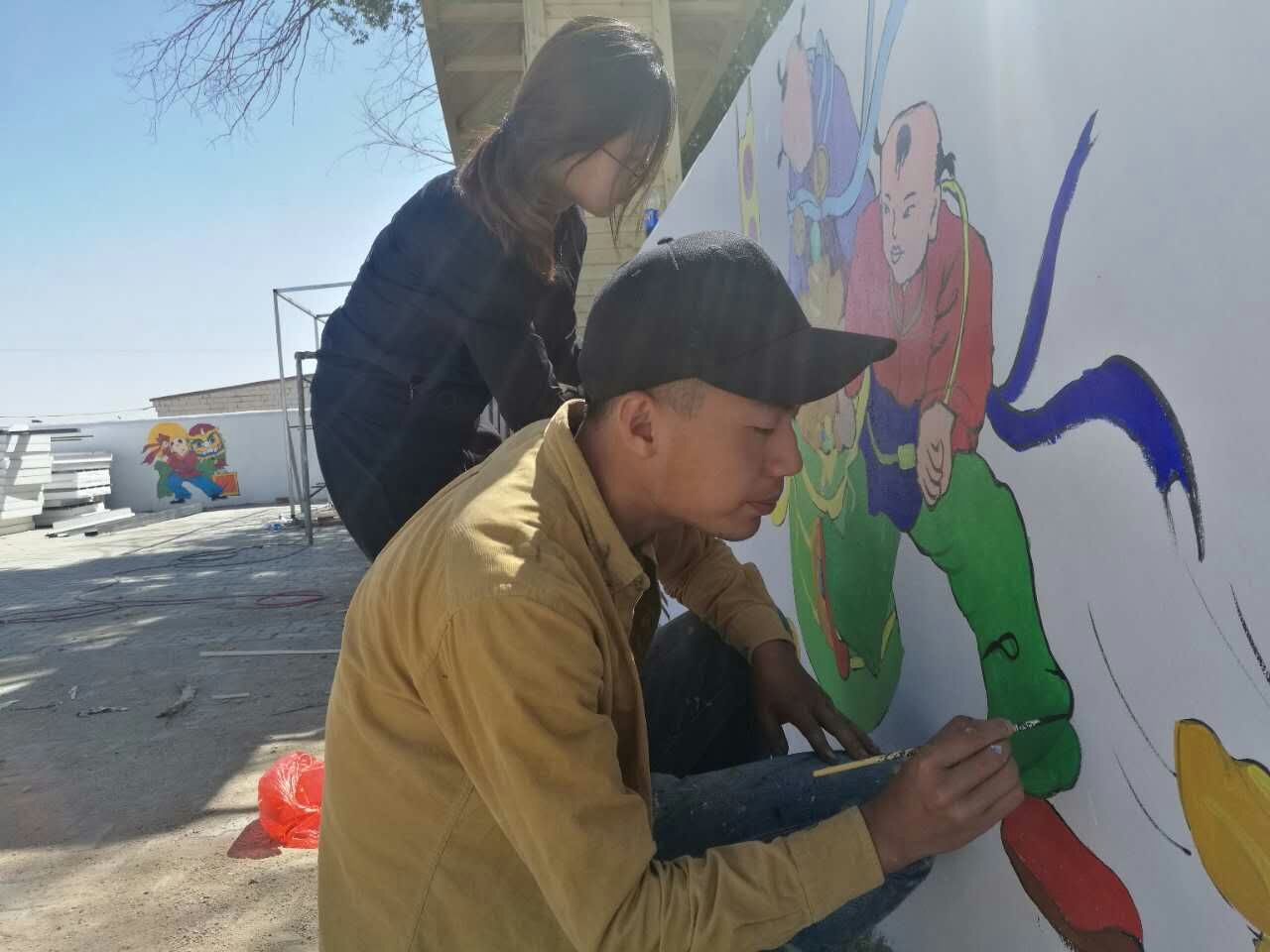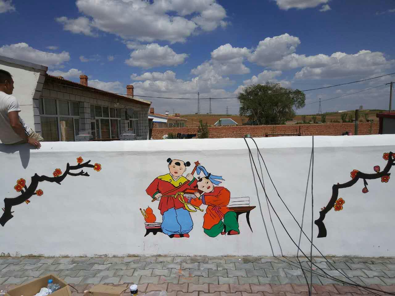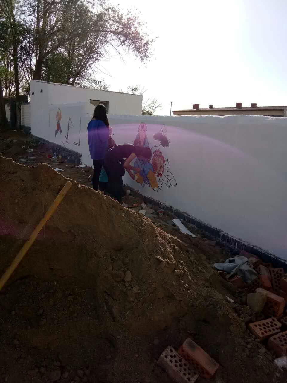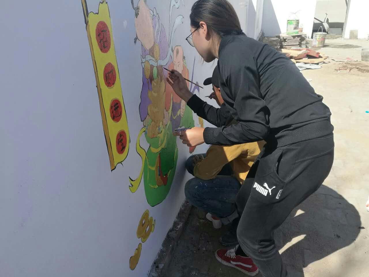 6月3日至6月13日期间,美术学院前后派出18名大学生志愿者来到我校定点扶贫地区固阳县怀朔古镇香房村和贾油坊村开展了以“精准扶贫、专业发力”弘扬社会主义核心价值观为主题的墙面彩绘活动。本次活动共历时12天,绘制了300多平米,40余幅图画,使村容焕然一新。经过11天的精雕细琢,怀朔古镇原本光秃秃的农家围墙已经“穿”上“七彩新衣”,40余幅手绘墙画完成,一个个生动形象的年画人物、一幅幅充满诗情画意的墙绘吸引了广大村民驻足观看。大学生们的精彩表现和奉献精神得到了当地村民和当地政府的一致认可。(美术学院)