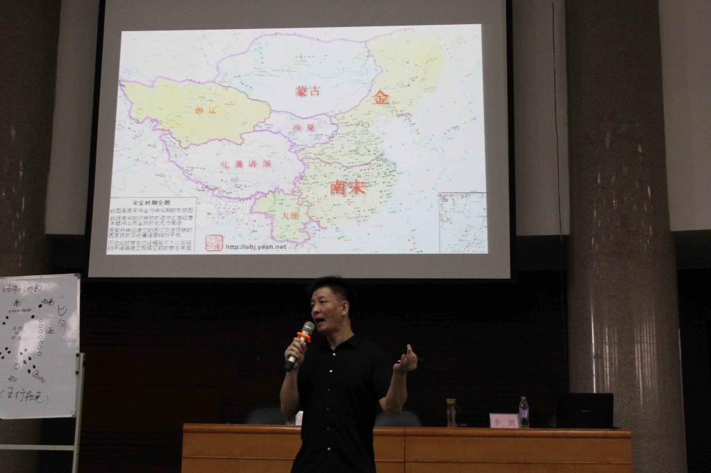 李凯老师在讲座中以《河图》、《洛书》中阴阳、五行之理让同学们了解我国朝代变迁。通过古建筑了解了古代常识。通过看地图了解了中国古代历史知识,让同学多角度、多维度的了解我国的历史长河。他妙语连珠、幽默风趣,不时穿插着一些词语的来源和延伸,开阔了同学们的知识面,让同学们学会图解历史,以不同的纬度、视角理解中国的传统文化。虽然李凯专家的讲座在学术的严谨方面还有些值得商榷之处,但不可否认,他一气贯注,自如流转的气势、神态,特别是信手拈来,生动活泼的材料运用和妙趣横生、幽默形象的语言,却让我们感受到了教学的另外一种魅力。