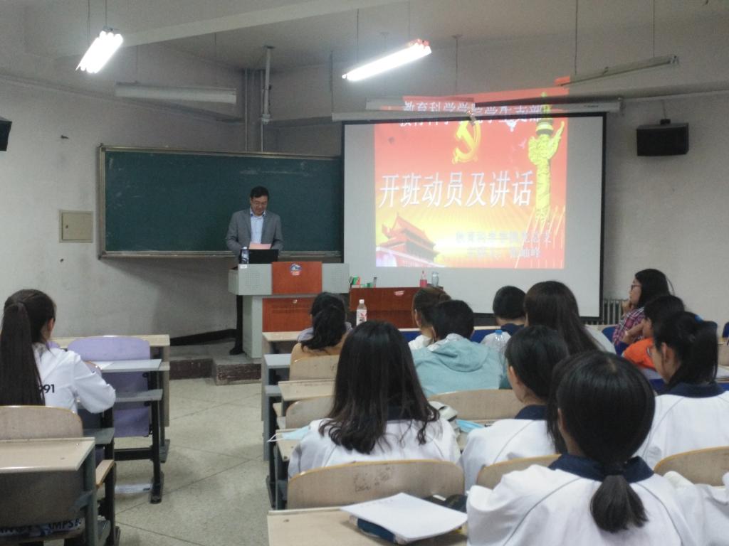 张岫峰同志在动员讲话中对参加本次党课培训的所有学员表示热烈的欢迎。他讲到,大学阶段对一个人的成长是关键时期,既是学知识、增本领的黄金阶段,也是树立理想信念,确立人生观、价值观、世界观的重要阶段,而理想信念是否科学,政治立场是否正确,在青年成长中起着决定性的作用。青年学生争取入党的过程,就是学习提高的过程,是确立远大理想和信念的过程,也是加强政治锻炼,培养党性观念和全心全意为人民服务精神的过程。因此,他希望学员们经过这次培训,能够增长党建基本知识,加强理论修养,提高自己的政治思想素质。紧接着,他以《提高认识、加强修养,认真上好党课;端正动机、坚定信念,争取早日入党》为题,为学员们上了第一堂党课;他围绕深刻领会入党积极分子接受培训的重要意义,入党积极分子如何端正入党动机、身体力行、做到在思想上工作上生活上入党等内容,结合入党积极分子的思想实际和表现进行了深入的分析、讲解和引导。同时,张岫峰书记还对学员们如何端正态度、完成好培训任务以及党课培训班的纪律提出了严格要求,希望学员们做到学有所思、学有所获、学以致用,使党课培训取得实实在在的效果,并在思想和实际行动上积极向党组织靠拢,争取早日入党并成为合格党员。