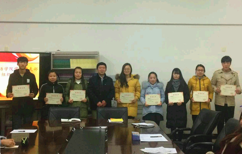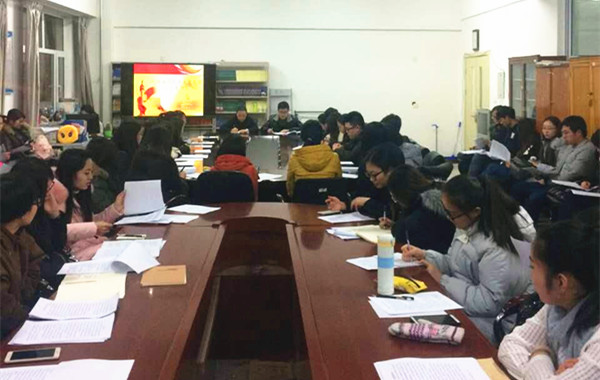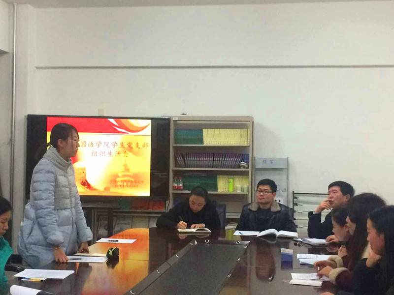 为进一步落实“五个一”工作机制和“十个一”党建工作要求,保持党员先进性,发挥党员“一面旗帜”的作用,12月26日晚,外国语学院学生党支部在外国语学院会议室召开2016年度组织生活会。会议由外国语学院学生第二党支部书记姜雪主持,党总支书记吴建钢、学生第一党支部书记张宝龙及学生第一、第二党支部全体党员出席了会议。