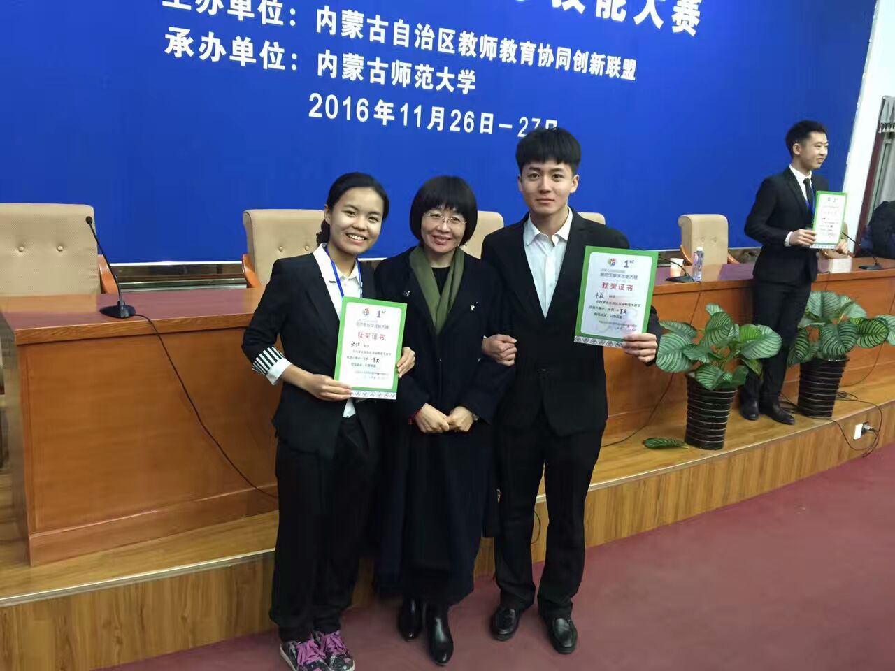 11月27日,内蒙古自治区教师教育协同创新联盟主办、内蒙古师范大学承办的“内蒙古自治区首届师范生教学技能大赛”落下帷幕,来自内蒙古师范大学、内蒙古民族大学等全区八所高校的135名师范生集中进行教学技能大比武,我校思政专业大三学生张甜、牛众在贺晋秀老师的指导下脱颖而出,分获思想政治教育组第一、二名。