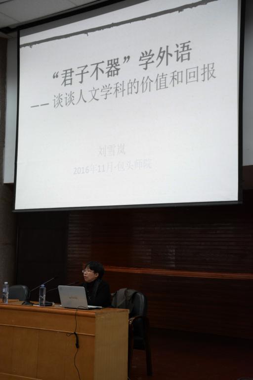 11月3日下午,外国语学院特邀中国社会科学院刘雪岚教授在学术报告厅开展“‘君子不器’学外语——谈谈人文科学的价值和回报”讲座,我院教师和2015、2016级全体学生参加了此次讲座。