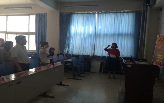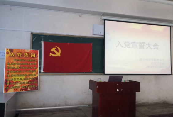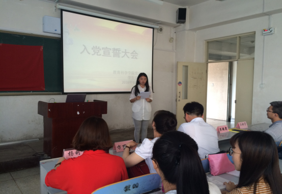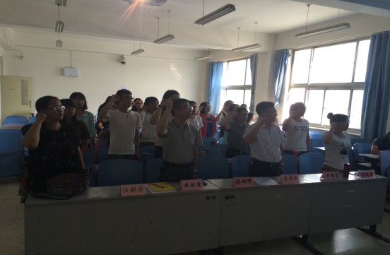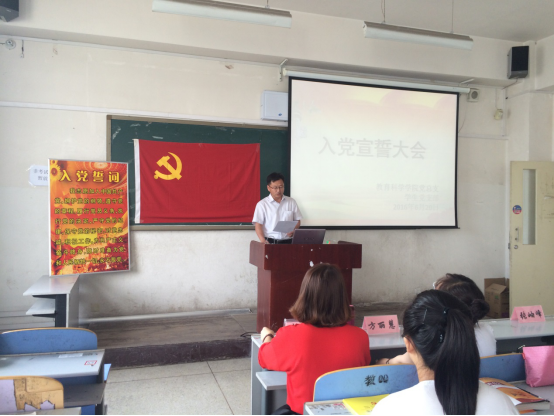 6月20日下午,教育科学学院党总支在博学楼东201举行学生预备党员入党宣誓大会。参加此次活动的有党总支副书记袁秀利老师、学生第一党支部书记樊毓霖老师和副书记汪甜芳老师、学生第二党支部书记方丽慧老师和副书记杨利霞老师以及本批发展的学生预备党员等。
