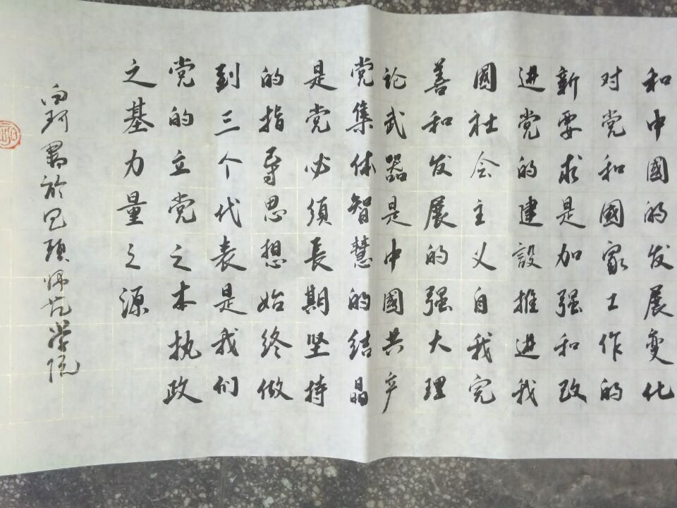 近日,美术学院组织全院师生积极参加学校党章书法抄写大赛活动。本次大赛在美术学院全体师生中掀起了一股“抄写党章、提升觉悟”的热潮。一幅幅作品苍劲有力、隽秀挺拔,有如行云流水,一颗颗“忠党之心”跃然纸上。在众多的参与作品中,5位老师和17位学生的对党章全文的接力式书法抄写作品被推选参加学校级比赛。(美术学院)