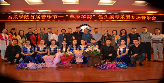 6月3日晚,包头扬琴乐团“草原琴韵”专场音乐会在包头师范学院音乐学院博艺厅圆满落幕。中国著名扬琴演奏家、教育家、中央民族大学许学东教授,中国扬琴网创始人梁柱分别发来贺电,包头音乐家协会副主席朱剑林、包头漫瀚艺术剧院副院长任维中、包头职业技术学校副校长申燕钊、国家二级指挥王悦霞、包头市昆区少年宫刘青云书记、严杰副主任、经济与管理学院书记高日晨、音乐学院院长崔东伟、书记李红梅、副书记赵玉强、副院长贾晓光及音乐学院各位教师出席本场音乐会。