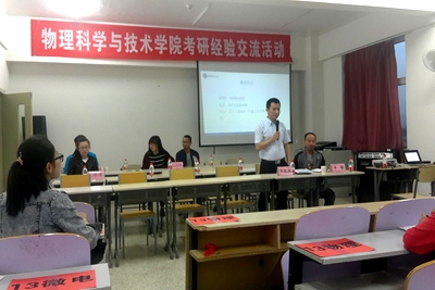 郭凯敏老师简要介绍了今年物理学院的考研情况,学长、学姐们分享了各自的考研经验。他们告诫准备考研的同学们,在学习中不仅要积累经验,掌握技巧,更要以平常心态看待考试,相信自己,并以他们自己的经历向大家说明了树立信心、不轻言放弃的道理。学长、学姐们用风趣,幽默的语言,既讲明了考研的重点,又提高了同学们的考研兴趣。