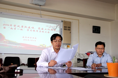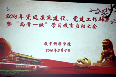 5月4日下午,教育科学学院召开2016年党风廉政建设、党建工作部署暨“两学一做”学习教育工作会。学院领导班子全体成员、学院内设机构各系、办负责人以及全体教职工党员参加了会议。会议由学院党总支副书记、副院长袁秀利主持。
