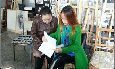 11月21日,美术学院刘咏梅教授对李敏锐、图力古尔两位老师进行了教学指导,将自己积累的丰富教学经验与技巧进行传授,鼓励他们多参加培训,多读书,阅读有关资料来获取课改信息,不断更新自己的教育观念。