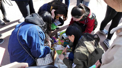 同学们在操场设立交易摊位,活动得到了我校师生的热情参与,现场气氛十分热烈,活动也得到大家的一致好评。( 美术学院 )