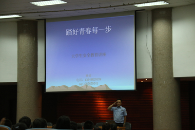 为响应学校加强学生安全教育的号召,营造安全、文明、和谐的校园环境,9月10日晚,美术学院组织新生参加了校保卫处举办的题为“踏好青春每一步---2015级新生安全教育讲座”,讲座由包头市公安局民警进行讲座,讲座内容包括:如何保障宿舍安全,水电安全,防盗防骗,人身财产安全。