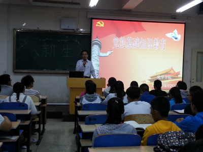 为了使2015级新生更好地了解党的基础知识,引导他们积极向党组织靠拢,9月21日晚,化学学院组织全体2015级新生参加了党的基础知识教育专题讲座,由学院党总支书记史继敏主讲,组织委员兼学生党支部书记韩泽红主持。