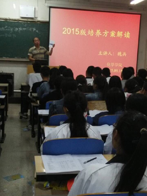 为使2015级新生明确学科专业内容,掌握在校期间要达到的基本要求,尽快转变角色,融入校园生活,化学学院于9月14日举办了2015版人才培养方案解读专题讲座。