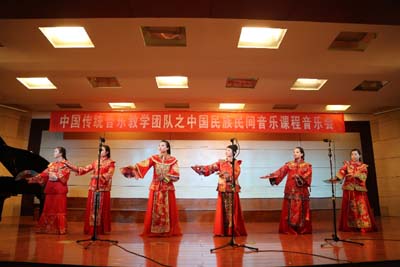 中国传统音乐教学团队是我校2010年首批教学团队,是以音乐学院基础性课程群为平台,在原有的理论教研室多年的教育教学改革与科研实践中所形成的教学团队。团队以中国传统音乐系列课程为龙头、以内蒙古地区民族民间音乐研究为重点,在团队带头人李红梅教授的带领下,在注重内涵建设的同时,积极开展教学研究与改革,不断探索新的教学方法和模式,使团队在探索中不断成长。此次以课程音乐会的形式进行展示,是一次具有突破性和挑战性的尝试。( 音乐学院 )