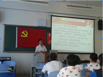 宣誓仪式结束后,学院副书记、副院长郭宏升老师为全体党员讲了一堂题为“加强党性修养,发挥党员模范先锋作用”党课。郭宏升老师从共产党员党性修养的基本内涵、增强党员党性修养的重要性和紧迫性、党性修养的基本内容和发挥党员模范带头作用三个方面深入阐述了党性修养是什么、为什么、怎么样三个问题,同时也对新老党员提出了要求,希望学生党员们在生活和学习的过程中铭记自己面对党旗许下的郑重誓言,严格以党员的标准要求自己,在学生当中发挥模范带头作用。同时还要不断加强自己的党性修养,争做一名优秀的共产党员。( 信息学院 )
