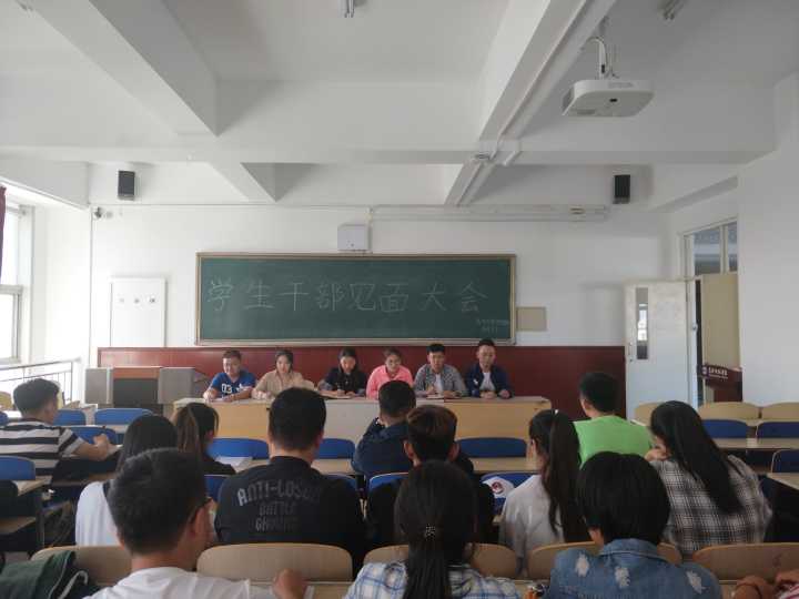 新学期到来之际,为进一步加强学生工作,确保迎新工作顺利展开,9月9日下午,经济与管理学院于博楼500教室召开了全体学生干部见面会。辅导员陈丽芳、谭彬,团总支副书记李臻,学生会主席韩桠洲、副主席包玉松、谭成宏,易班学生工作站站长顼娇及全体学生干部参加了会议。