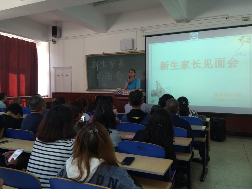 9月12日下午,教育科学学院在博学楼600召开2018级新生家长见面会。学院领导、系主任、辅导员、新生班主任和助理班主任及新生家长共100余人参加了本次见面会。