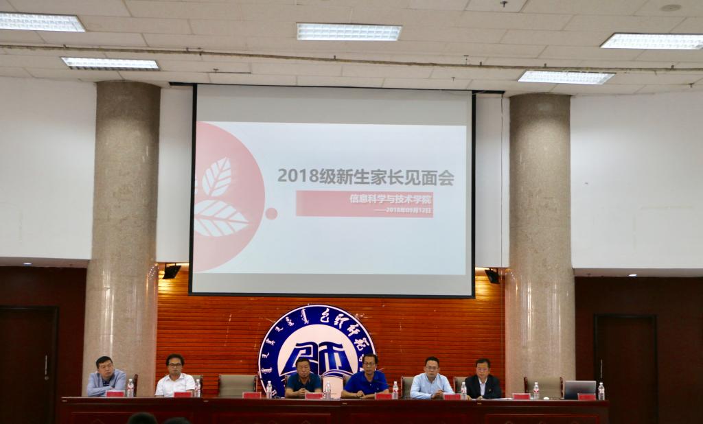 为了让新生家长和同学们尽快了解学院情况和所选专业的未来就业方向,建立起学校、家庭和企业之间的沟通和联系,共同关注新生的成长成才, 9月12日下午,信息学院在博学楼二楼学术报告厅召开了2018级新生家长见面会,近500位新生和家长参加了会议。学院党总支书记周汉忠、院长马占飞、副院长张为、企业负责人赵静、梁云亮、任青松,新生班班主任、学工办主任以及全体辅导员参加了会议。会议由副书记、副院长郭宏升主持。