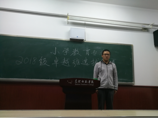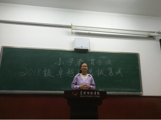 根据教育部卓越教师计划项目的要求和我校的实际情况,包头师范学院教育科学学院将在2018级小学教育专业继续设置卓越实验班。2018年9月15日-21日,教育科学学院在新入学的2018级小学教育专业学生中进行卓越实验班学生选拔。本次选拔经过前期动员,在学生自愿报名的前提下,分初试、复试两个环节进行,最终按照高考成绩占50%,选拔考核成绩占50%的原则进行排名择优录取,同时综合考虑学科方向、民族、性别、生源地等因素,最终组建了2018级卓越实验班。
