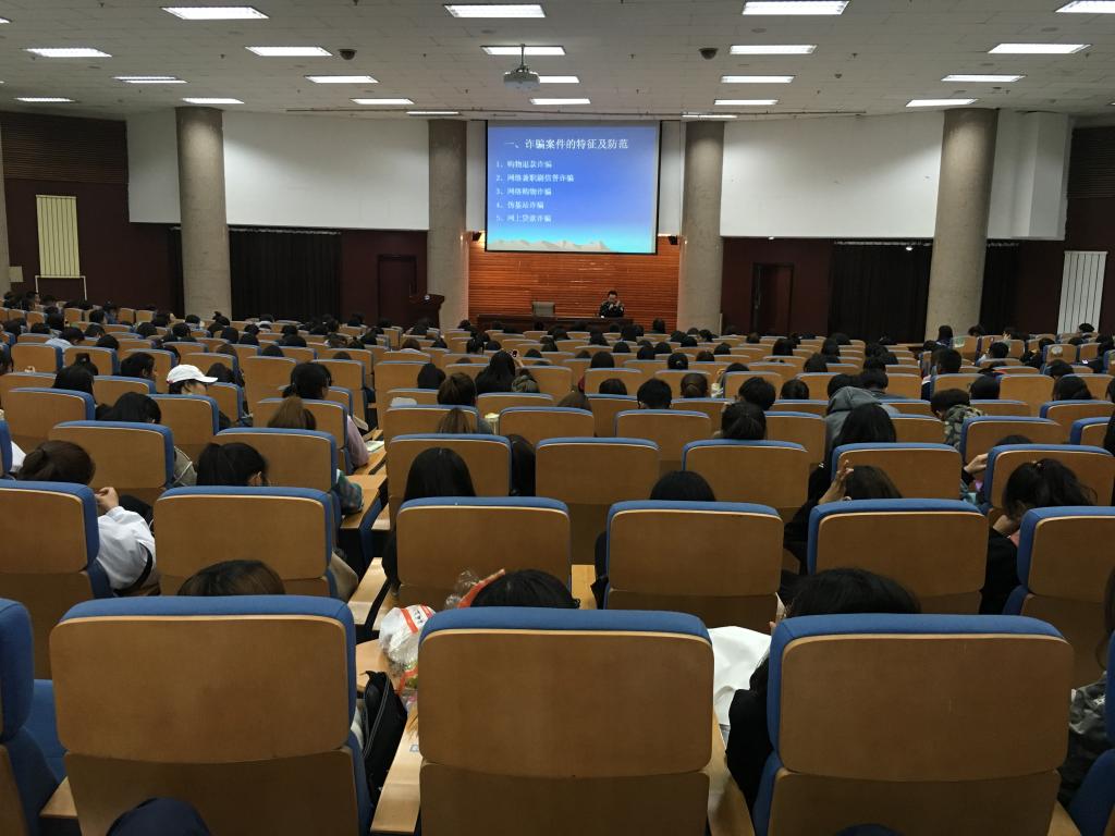 讲座中,尹警官围绕诈骗案件的特征、校园周边多发案件和毒品种类及危害等问题进行了详细的讲解,并用生活中的实例加以说明。通过播放校园偷窃等视频,介绍了有关校内的典型安全问题,同时呼吁广大学生要抵制金钱的诱惑,提高安全防护意识,用实际行动切实减少悲剧的发生。