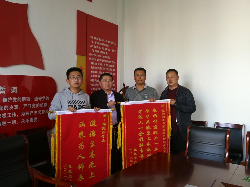 9月29日上午,孩子家长再次来到我校,希望给予律德明同学5000元作为报答,但被律德明同学婉言谢绝。10月16日下午,男孩家长特意来到生物科学与技术学院为律德明同学及学院送来锦旗,表达感激之情!此过程中,律德明认为这对于他来说是非常小的一件事,而且坚持说这件事是包师好多同学一块儿做的。